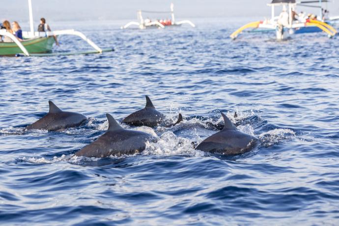 Vous prendrez place à bord d’une pirogue traditionnelle balinaise pour une sortie en mer au lever du soleil. Cette activité, incluse dans votre programme (sous réserve de conditions météorologiques favorables), vous permettra d’observer les dauphins dans leur habitat naturel, au large des côtes de Lovina. Le spectacle du soleil se levant sur l’océan, accompagné des sauts gracieux des dauphins, est un moment magique et inoubliable.