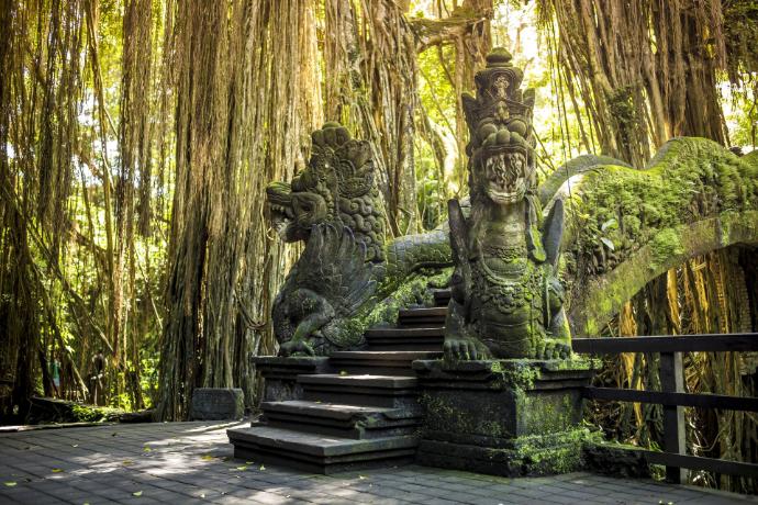 L’après-midi est consacrée à la visite de la célèbre Forêt des Singes d’Ubud (Sacred Monkey Forest Sanctuary), un lieu mystique où la nature et la spiritualité se rencontrent. Ce sanctuaire abrite plus de 700 macaques à longue queue, vivant en liberté dans une forêt tropicale dense.