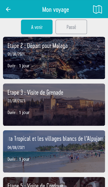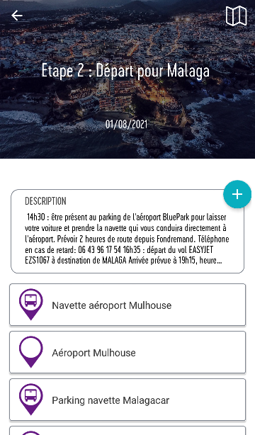 C'est aussi votre carnet de voyage numérique avec la carte interactive de votre itinéraire, et tous vos documents facilement accessibles, vos billets d'avion, bons d'échanges pour votre hébergement, location de voiture, les billets entrées aux sites touristiques, vos pièces d'identité, etc...