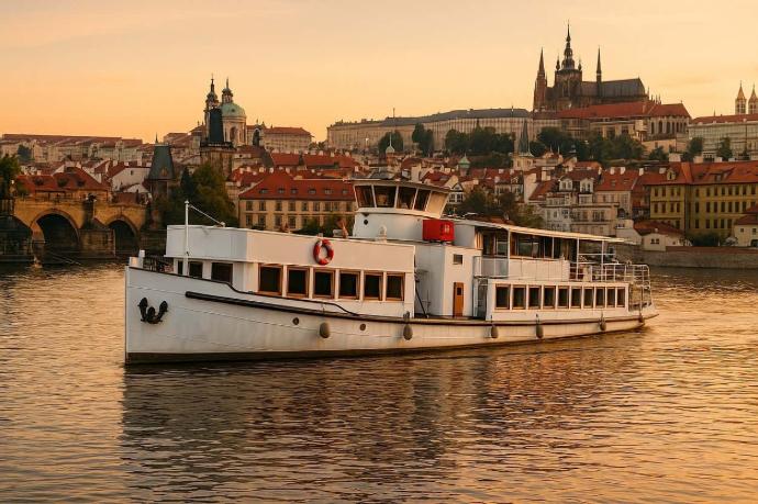 Offrez-vous une expérience unique en embarquant pour une croisière-déjeuner sur la Vltava. Depuis le pont du bateau, admirez les plus beaux panoramas de Prague : le Château majestueux, le Pont Charles et la forteresse de Vyšehrad se dévoilent sous un angle inédit, tandis que vous savourez les spécialités tchèques.