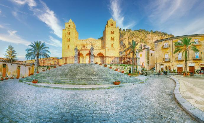 Arrivés à Cefalu, découvrez sa plage dorée, ses ruelles médiévales, sa cathédrale normande classée à l’UNESCO, et sa vue panoramique depuis la Rocca, le rocher emblématique qui surplombe la ville.